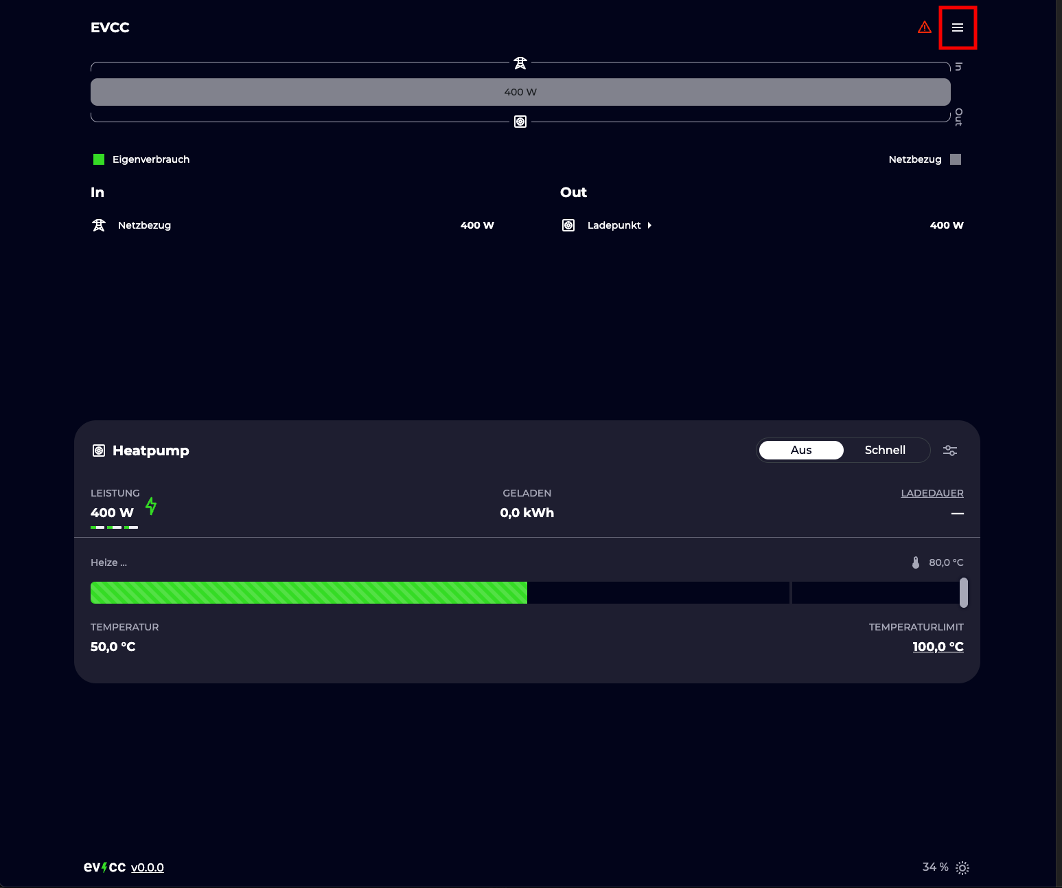 Schritt 1: evcc Dashboard öffnen