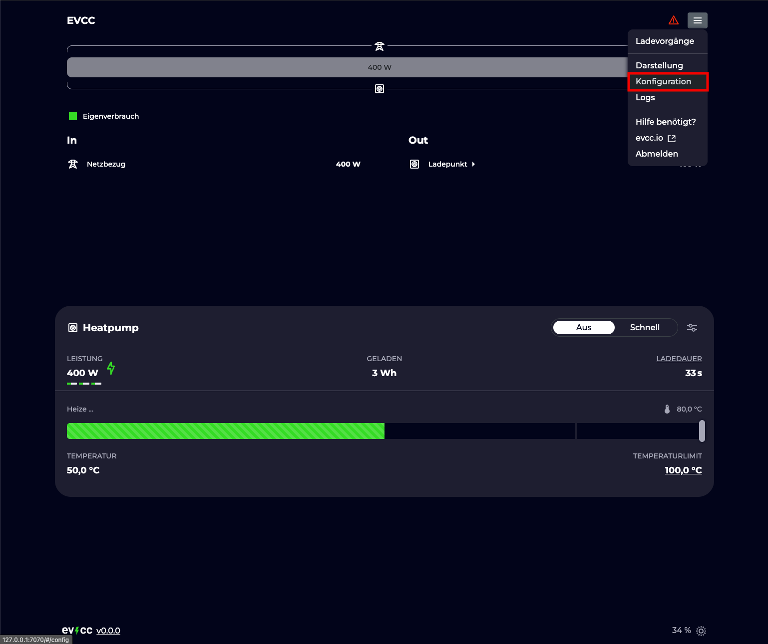 Öffne das evcc Dashboard in deinem Browser.