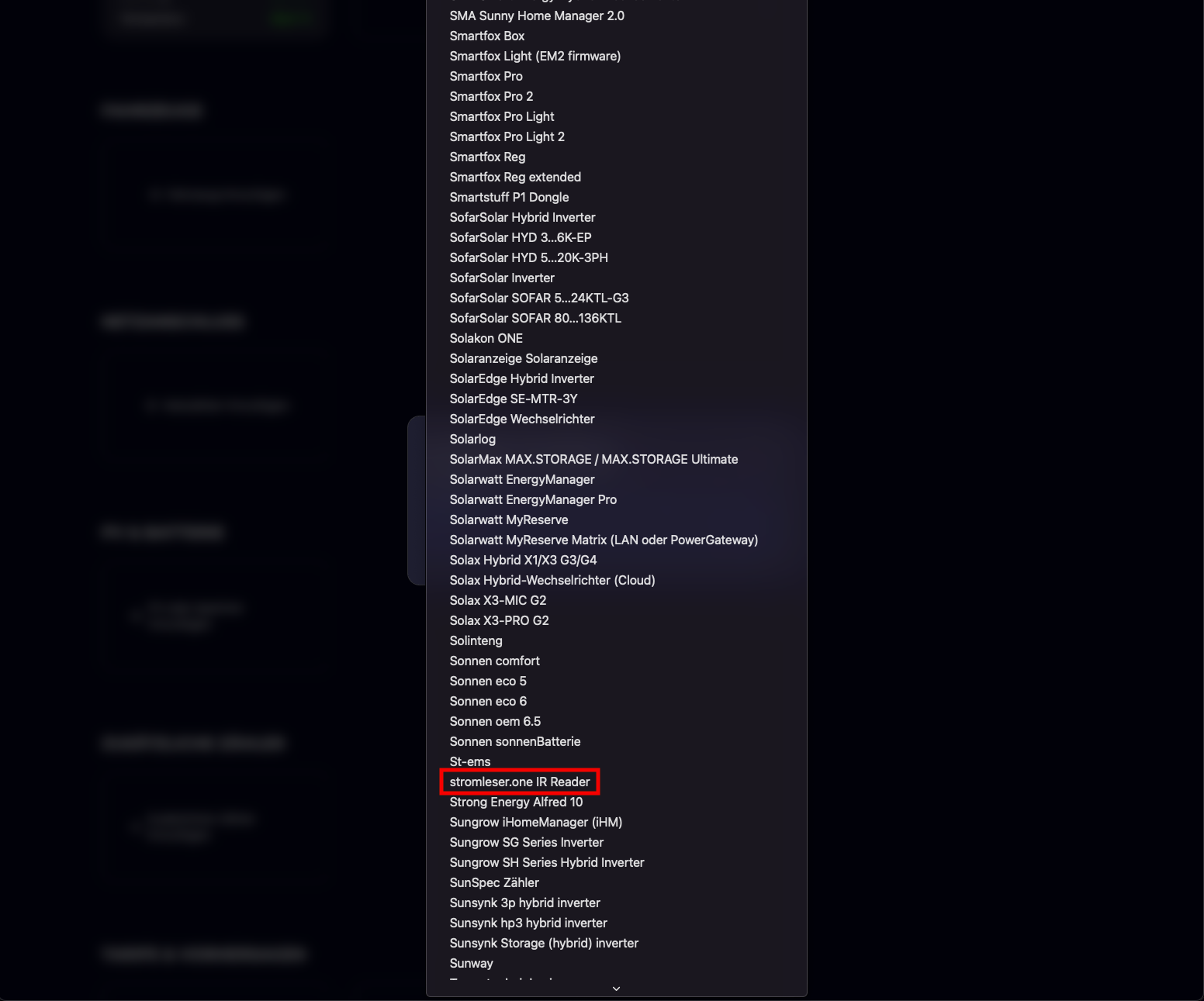 Suche in der Geräteliste nach stromleser.one IR Reader und wähle diesen aus.
